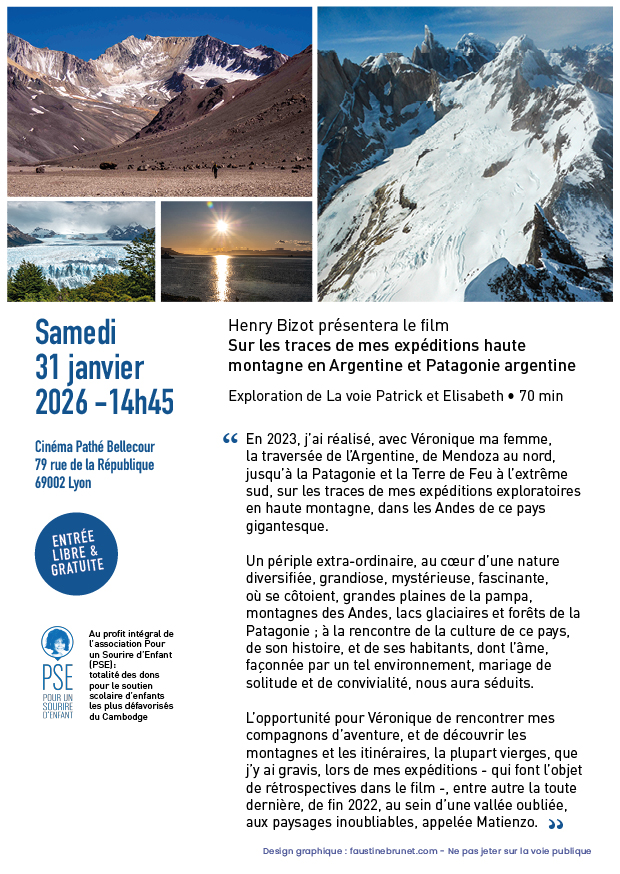 SMLH 69 : Ciné-conférence « Sur les traces de mes expéditions en haute montagne en Argentine et en Patagonie »